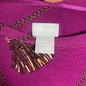 Chico's Size 2 Long Sleeve Equestrian Chain Print Shirt Purple Gold Large Soft