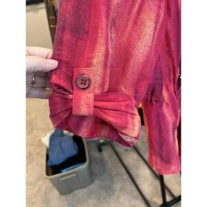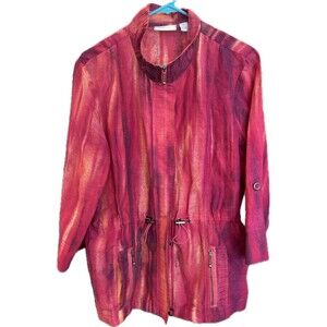 Chico’s Size 2 Ombré Jacket Tie Dye Drawstring Waist Full Zip Snap Jacket Linen