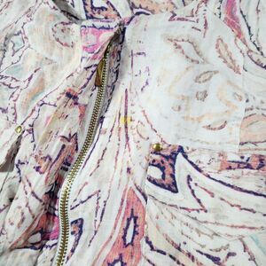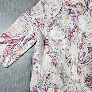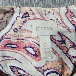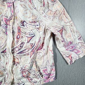 Chico's Size 2 Pink Floral Paisley Full Zip 100% Linen Crop Lightweight Jacket