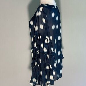 Chico's Size 2 Sheer Navy/Big White Polka Dots, Multi-Tiered Gathered Sleeves