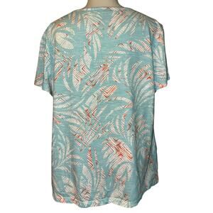 Chicos Size 2 US 12 Tribal Tropics Smocked Notch Neck Tee Feminine Tropical Top