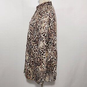 Chico's Size 2/12-14 Large Leopard Print Button Down Long Sleeve Mandarin Collar Lined Jacket Office Career Modern Contemporary Party Cocktail Gently Pre-Owned Excellent Condition Reasonable Offers Welcome