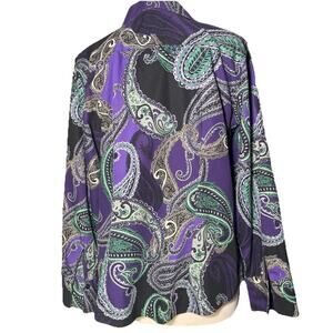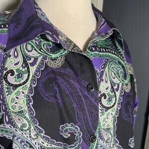 Chico’s Size 2/M No Iron Button Up Shirt Purple and Green Paisley 100% Cotton
