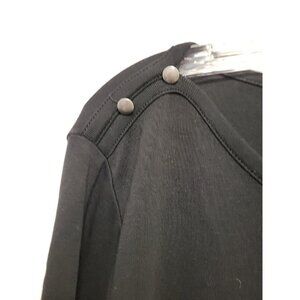 Chicos Size 3 100% Cotton Blouse Studded Detail On Sholders 3/4 Sleeves Black XL