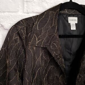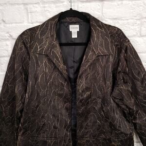 Chico's Black & Metallic Bronze Leaf Open Jacket