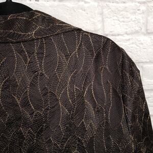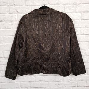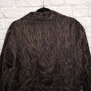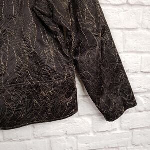 Chico's Size 3 Black & Metallic Bronze Embroidered Leaf Open Jacket Size XL 16