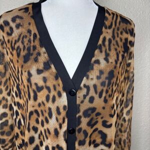Chico's Size 3 Brown Black Leopard Animal Print Sheer Cardigan Women's Size XL