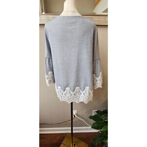 • Bon jour, lovely! Styled with French stripes and wide, 3/4-sleeves, this must-have, scoop-neck top is finished with a flourish of gorgeous lace.