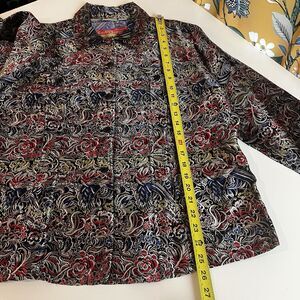 Chico’s Size 3 Multicolored Silk Blend Jacket Asian Inspired Abstract Flaw Read