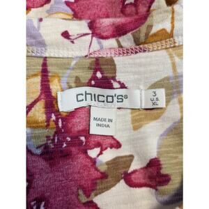 Chico's Size 3 US XL Slub Knit Split Neck Henley Tee Colorful Floral