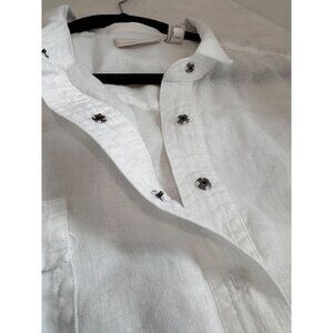 Chico's Size 3 White 100% Linen Long Sleeve Button-Up Blouse w/Roll-Tab Sleeves