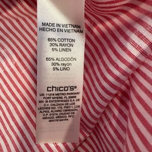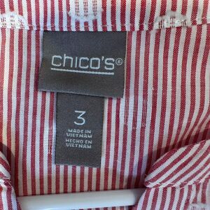 Chico's Size 3 Women’s Henley Style Top Red White Stripe Dots Short Sleeves