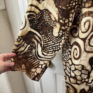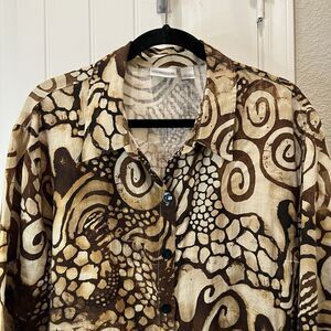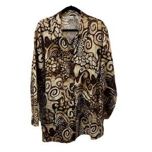 Chico's Size 3 Women's US XL 100% Linen Brown Animal Print Button Up Tunic Top