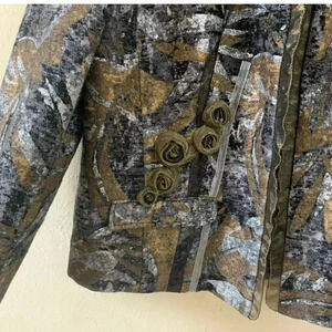 Chico’s Size 3 Open Front Jacket Wool Silk Blend Gold Silver Back Slit Career XL Long Sleeve, back slit