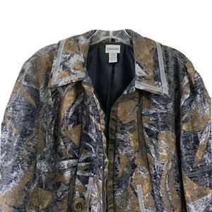 Chico’s Size 3 Open Front Jacket Wool Silk Blend Gold Silver Back Slit Career XL Long Sleeve, back slit