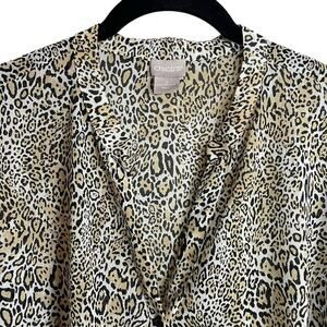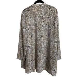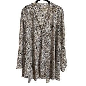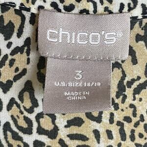 Chico's Size 3 XL Button Up Long Sleeve Animal Print Blouse Brown Tan