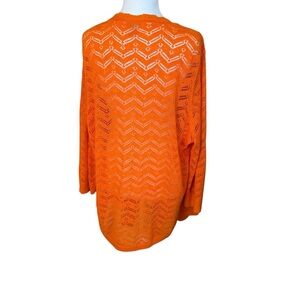 Chicos Size 3 (XL) Lily Open Knit Cardigan Sweater Long Sleeve Orange Shark Bite