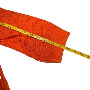 •Style Profile: Chicos Size 3 (XL) Lily Open Knit Cardigan Sweater Long Sleeve Orange Shark Bite