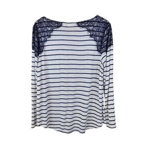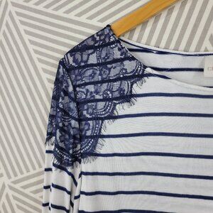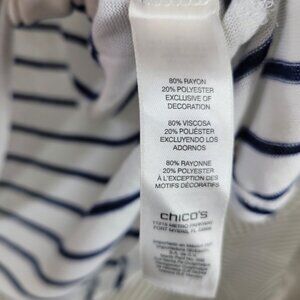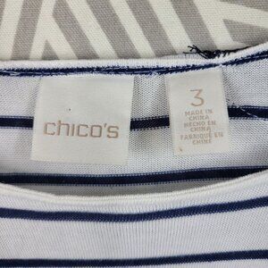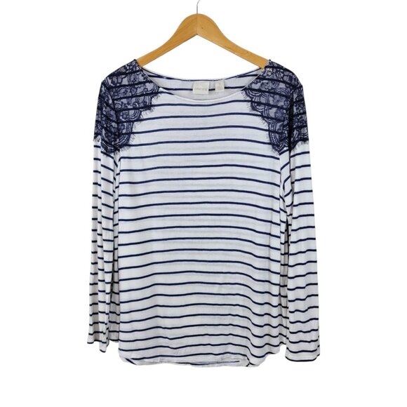 Chicos Size 3 XL Top T-Shirt Casual Lace Shoulder Detail Blue White Stripe