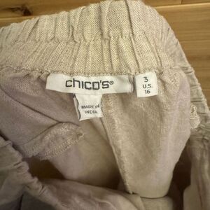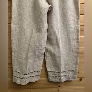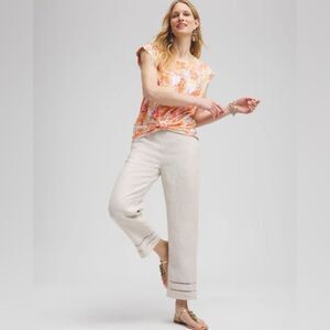 Chicos Size 3/16 Linen Ladder Trim Pull On Cropped Straight Leg Pants Breathable