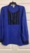 A sophisticated Chicos blue blouse featuring elegant black beaded details, soft fabric with a suede-like feel, and stylish snap cuffs. A refined wardrobe addition.