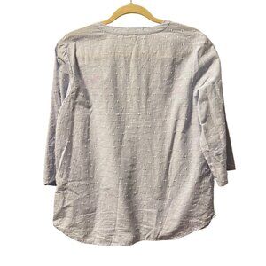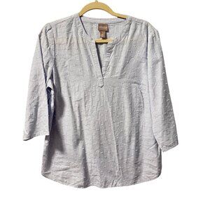 Chicos Size M Light Blue Cotton Textured 3/4 Sleeve Blouse