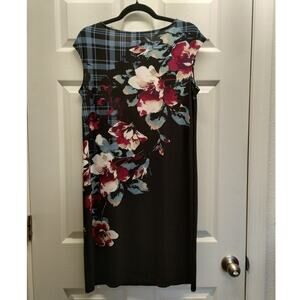 Chico's Size Medium (1) Black Blue Plaid Floral Sleeveless Boat Neck Shift Dress