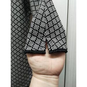 Chico's Size Medium (1) Black White Geometric Fringe Trim Dolman Sleeve Top