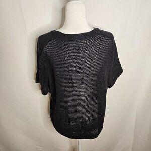 Chico's Size Medium (1) Round Neck Short Sleeve Deep Navy Open Knit Sweater