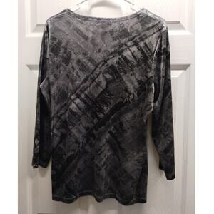 Chico's Size Medium (1) Velvet Gray Silver Abstract Geometric 3/4 Sleeves Top