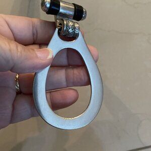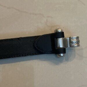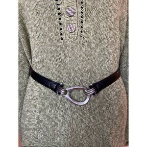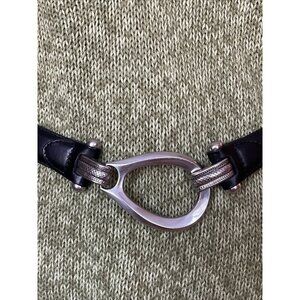 Chico's Size SM Black Slider Adjustable Leather Belt with Oval Silvertone Buckle