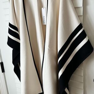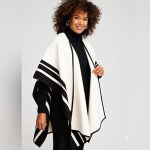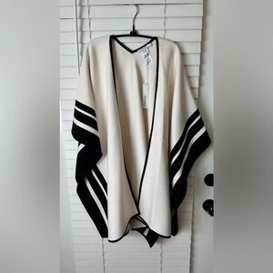 Casual fit elbow sleeve ruana with front dual zipper with Chico's logo pull.