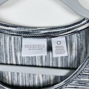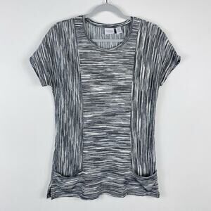 Chico's Size Small 4 0 Weekends Space Dye Top With Pockets Black Cream Cotton