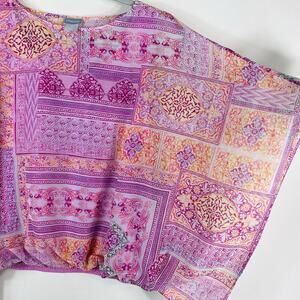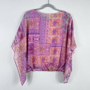 Chico's Size Small 4 6 0 Coastal Tile Bubble Hem Top Boho Casual Vacation
