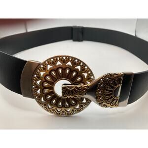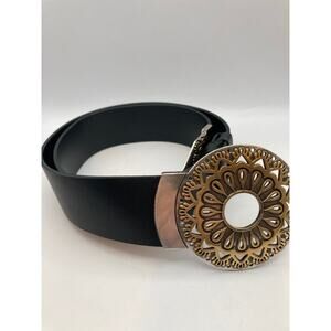 Chico's Size Small Adjustable Black Leather w/Gold Silver Adjustable Buckle Hook