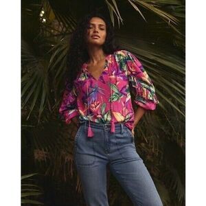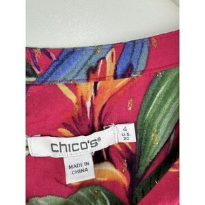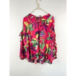 Chico’s Size XL Floral Clip Dot Ruffle Blouse Tripical. Condition is Pre-owned.