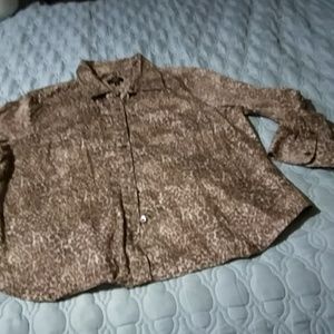 Black and white jacket from Chicos. 98% cotton, 2% spandex, waffle texture, cloth covered buttons, front and chest pockets. Could easily be a year round jacket. Chicos size 3, see pictures for measurements. Very good used condition