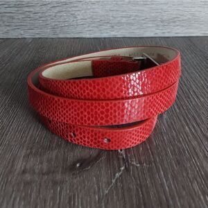 Chicos Skinny Belt Red Leather Faux Snakeskin Hammered Silver Rectangle Buckle L