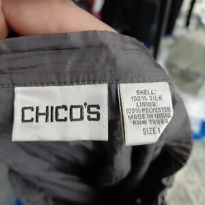 This Chicos women's skirt in size M features a beautiful floral pattern with beaded and sequin accents, making it a formal and artsy choice. Made from silk with a mid-rise and long maxi length, this skirt is designed for dry clean only care. The gray color and classic theme make it suitable for casual or formal occasions during the summer, fall, and spring seasons. Perfect for adding a touch of elegance to any outfit, this skirt from Chico's is a stylish and versatile addition to any wardrobe.