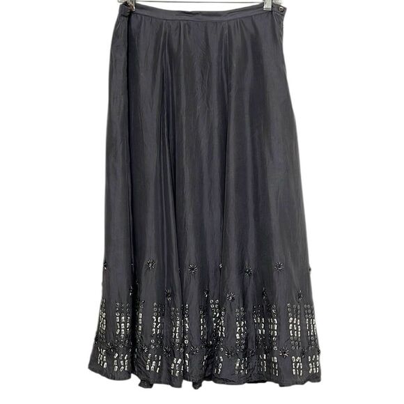 Chicos Skirt Size 1 Woman’s 8 Silk Midi A-Line Gray Beaded Sequins Lined