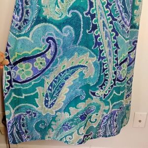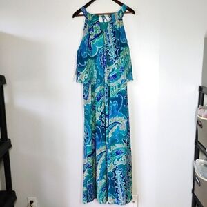 Chico's Sleeveless Halter Ocean Paisley Bib Maxi Dress Womens 3 XL Coastal Boho