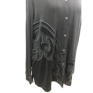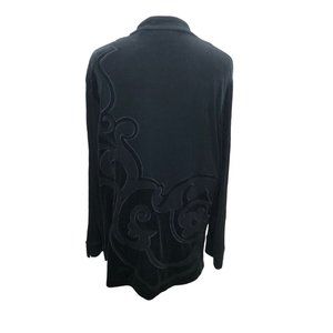 Chico's Slinky Knit Cardigan Jacket Velour Applique Mid Length