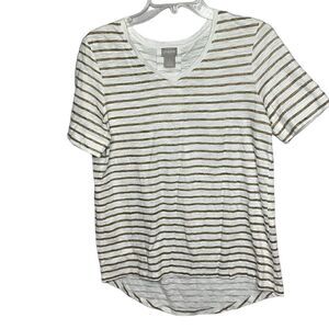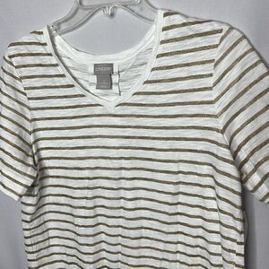 Chico’s Slub Gold Stripe Tee Shirt. Size 0. (Small)