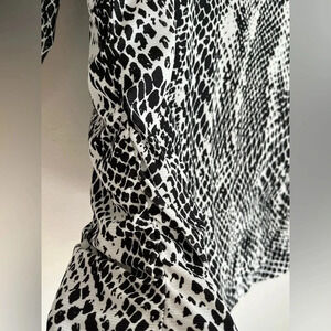 Excellent used condition, snake print, full zip, lightweight, body lined, 3/4 length Ruched sleeves,also Ruching at waist, Chico’s size 0 is equal to a size Small/4, Wrinkle free fabric, please see photos for approximate measurements