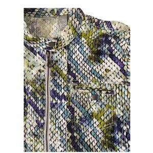 Chico’s Snakeskin Pattern Biker Full Zip Jacket Size 2(US 12) Purple, Blue,Gree