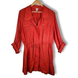 Chico's Snakeskin Print Tie Waist Tunic Red Orange Size 1 / Medium