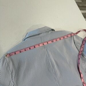 Chico's Snap Button Jacket Blue & White Pin Stripe Blazer Size 12-14 (Chico’s 2)