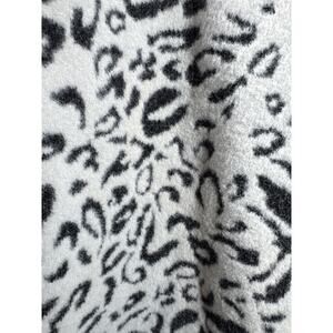Chico's Snow Leopard Print Cardigan Pockets Fuzzy Knit Sweater Size 1/Medium