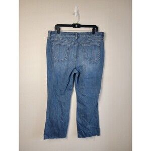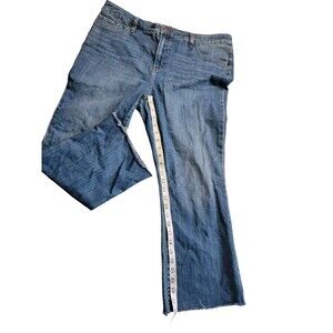 Elevate your denim game with these Chico's Kick Fkare crop jeans, perfect for any casual occasion. The jeans are made of a comfortable cotton blend fabric in a solid blue color and feature a mid-rise fit. The zip and button closure, along with the accents, add a touch of style to the jeans. These jeans are perfect for women who want to look stylish and feel comfortable. The size L jeans have a regular fit and a crop feature, making them a great addition to any wardrobe. Whether you're going out with friends or running errands, these Chico's Kick Fkare crop jeans will definitely make you stand out.