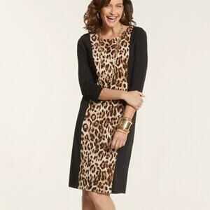 Chico's So Slimming Black Animal Print Classic style Dress Size 01 Medium